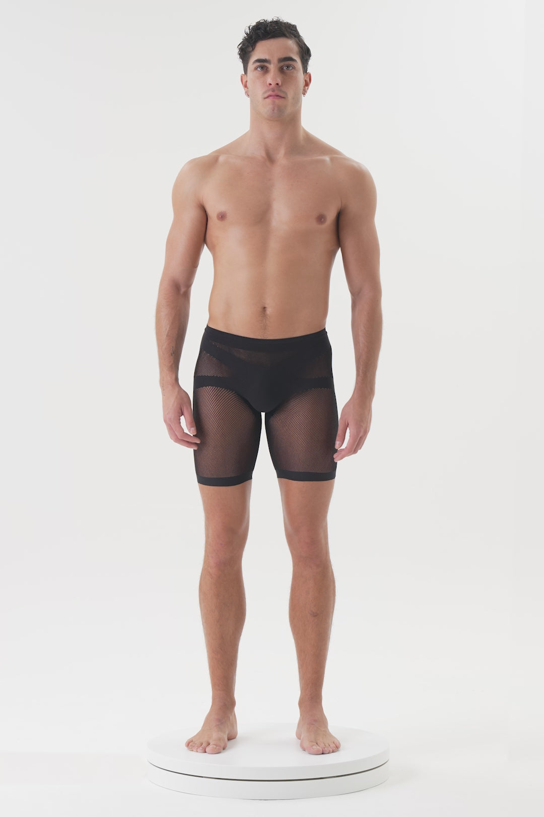 OUR BONDAGE-INSPIRED CROSS SHORTS PROVIDE A FITTED CUT IN A BREATHABLE, SCULPT-FIT MESH. THE CROSS DETAIL AT THE CROTCH CONTINUES AROUND THE BACK TO FORM A SUPPORTIVE AND FLATTERING JOCKSTRAP - PERFECT FOR A WEEKEND OF FUN…